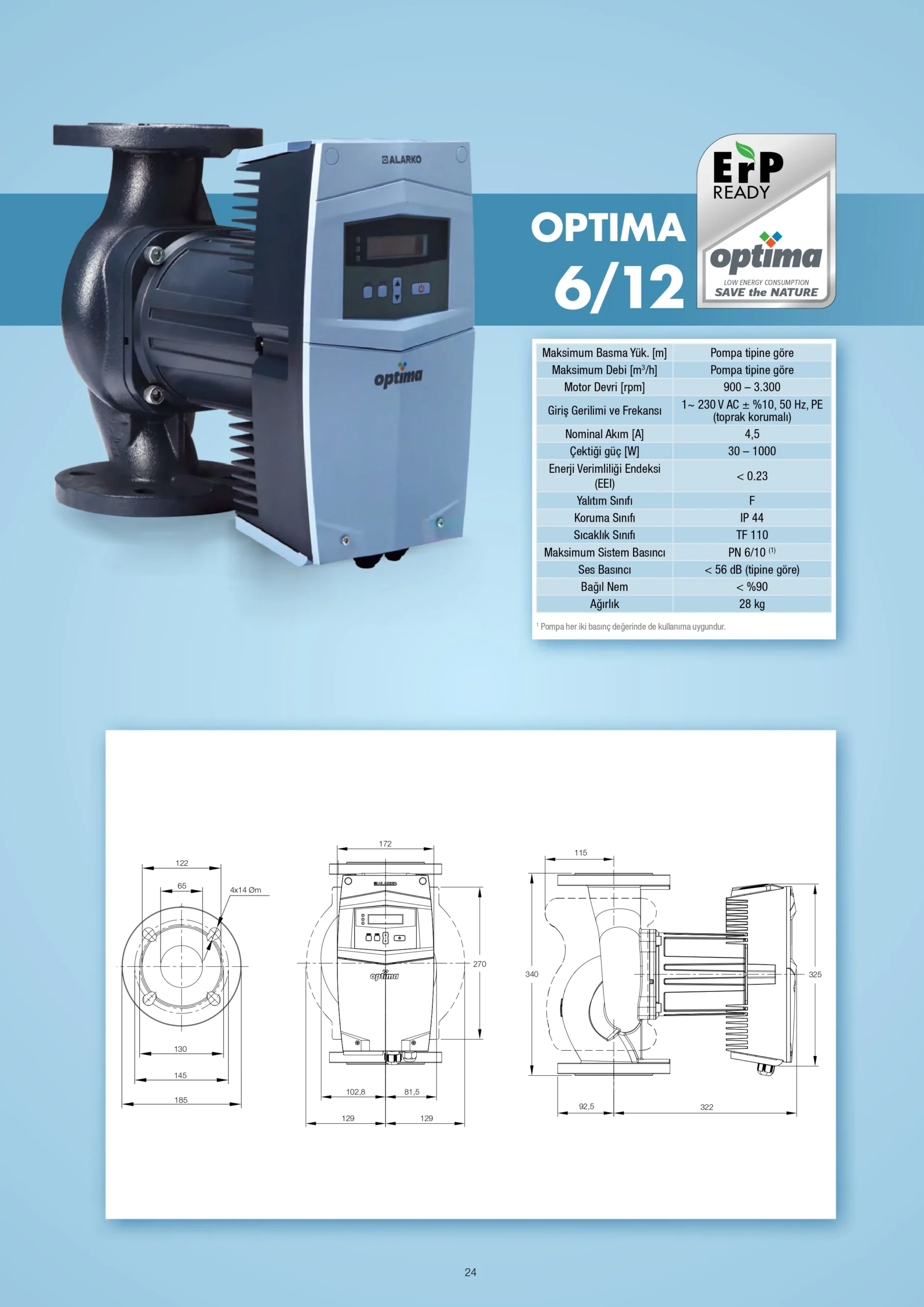 - Alarko Optima BYS sahip olduğu üç farklı işletim modu ile geleneksel tek ve üç hızlı pompalardan farklı olarak sürekli ideal çalışma noktasında hizmet verir. Bu sayede yüksek enerji tasarrufu mümkün olur.